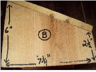 For piece B, cut a 6" length, measure 2½" up from the bottom on the right side, and scribe a diagonal to the upper left corner. Cut along the diagonal. using handsaw, coping saw, power saw, scroll saw, whatever.